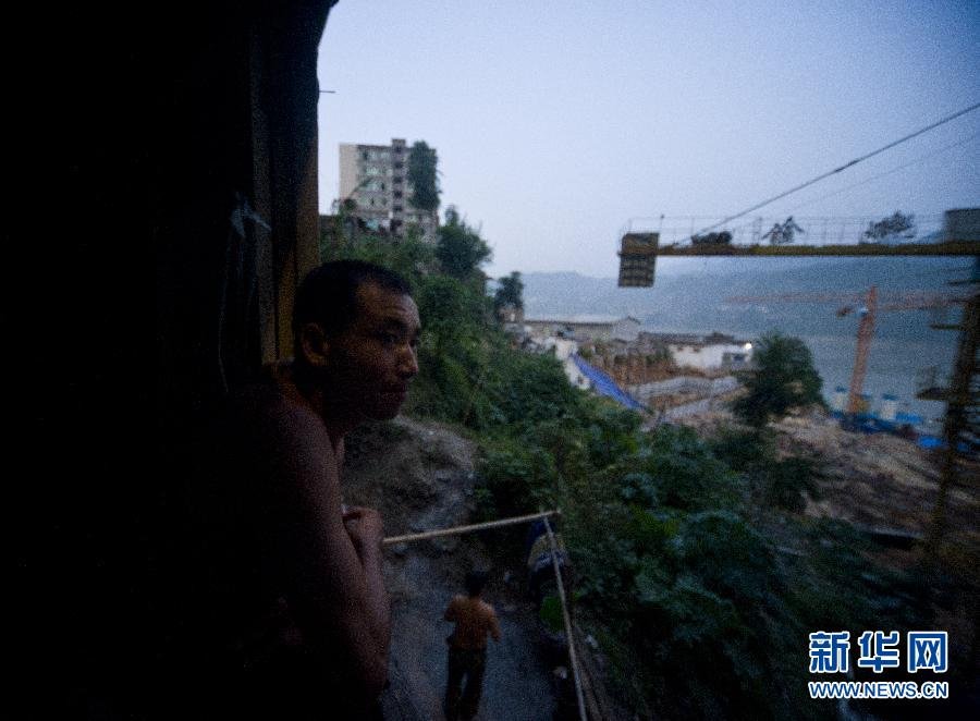 “棒棒”旅舍内,一名“棒棒”眺望着窗外(8月8日摄)。