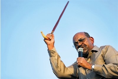 1月7日,苏丹总统巴希尔在一座桥梁的落成典礼上发表演讲。 图/人民图片