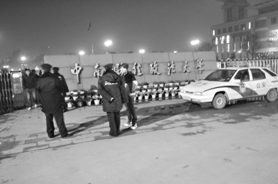 入夜时分,中南财经政法大学东大门,多名警察手持嫌疑人照片对出校人员进行比对盘查。记者 鄢玉红 摄