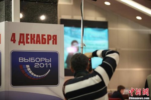 第六届俄罗斯国家杜马选举结束,进入计票程序。图为俄中央选举委员会一角,目前,该机构正在对选票进行紧张的统计。初步结果显示,统俄党以47.34%的支持率胜出。中新社发 贾靖峰 摄