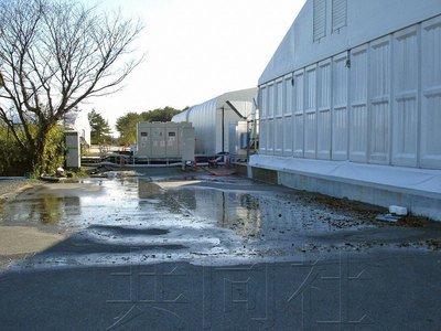 含有放射性物质的污水从福岛第一核电站放置污水净化装置的厂房流出。照片由东京电力公司提供。(共同社)