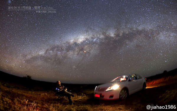 这是新浪微博网友@jiahao1986 今年6月16日在澳大利亚拍的银河月全食,很能体现月全食真正的魅力。