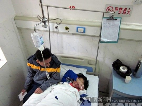 12月8日,在北海市合浦县人民医院住院部,女孩小陈(化名)还躺在病床上,输着点滴。