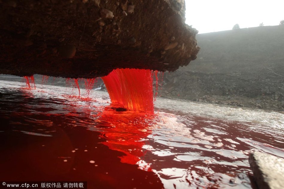 洛阳涧河被污染河水变血红色