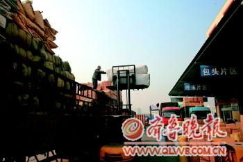 13日上午,记者在临沂中联物流公司门前看到,隽立峰正在指挥工人们干活,十几位工人在为三辆大卡车装载货物,旁边几辆铲车来回穿梭,一片繁荣景象。可隽立峰说:“现在的业务量减少得太厉害,可以说旺季不旺。”