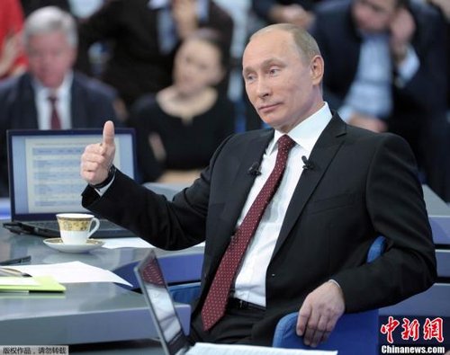 资料图:12月15日,俄罗斯总理弗拉基米尔·普京在电视、广播、网络直播节目中与普通民众直接交流,回答提问。刚刚结束的俄罗斯国家杜马、即议会下院选举成为话题之一。