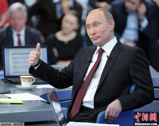 资料图:12月15日,俄罗斯总理弗拉基米尔·普京在电视、广播、网络直播节目中与普通民众直接交流,回答提问。刚刚结束的俄罗斯国家杜马、即议会下院选举成为话题之一。
