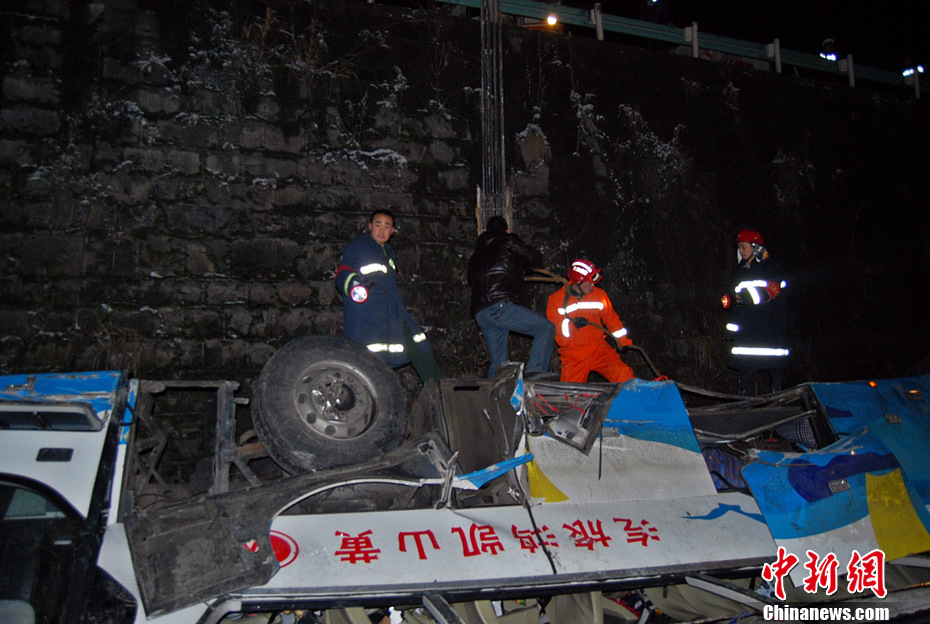 据了解,一辆车牌为皖J06318的大型客车行驶至兰海高速1765km+500处时,冲过中间隔离带及对向车道,冲出护栏,跌入高约8.8米的路坎下水沟。经核实,该车核载53人,实载56人,其中包括3名儿童。经初步调查,该车于1月3日23时许从浙江义乌出发,开往四川泸州叙永,驾驶员疲劳驾驶、超速行驶,加之降大雪,处置不当致事故发生。