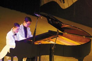 李威特与叶安宁(左)四手联弹。重庆晚报记者 毕克勤 摄