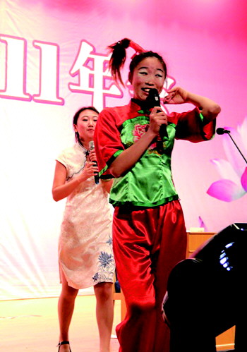 嘉华国旅年会上的双簧表演。