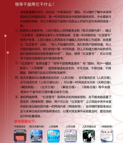 中新网12月19日电 近日,一款专门为领导干部和决策人士量身打造的新媒体型移动办公平台——红派壹号,由全国网联在人民日报社人民网、工信部研究所等单位的共同协作下成功推出。它的上市,标志着平板电脑真正开始担负起移动办公的功能。因而,“红派壹号”被喻为国内首款决策人士移动办公平台。
