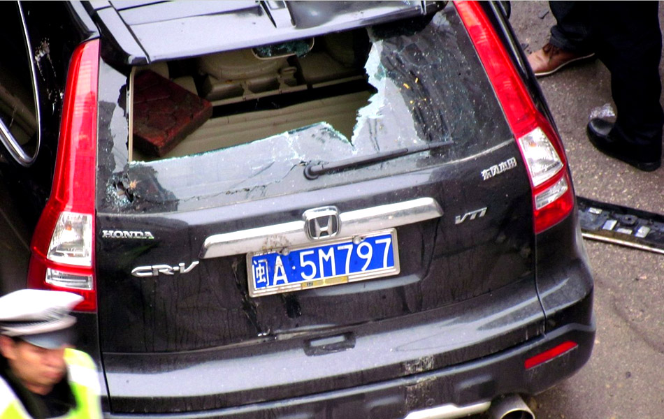 记者了解到,当日15时30分许,苏某驾驶一辆挂“闽A”籍号牌的小型普通客车行至南宁市高峰路中段时,车辆突然失控连续撞中多名路人,截至当日19时,事故共造成28名行人不同程度受伤,目前28名伤者已送往医院进行治疗,其中2人伤势较重正在医院进行手术治疗,其他伤员为轻伤和轻微伤,目前均无生命危险。图为肇事车辆。