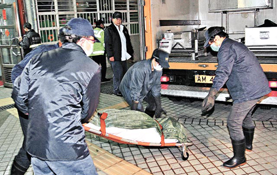 消息称,阿辉的公司前晚在荃湾一家酒楼食年夜饭,他饮得酩酊大醉,至晚上 10时许由同事截的士送他返家。阿辉回家后,只有父亲在家,疑他向父亲要钱过年被拒,大发雷霆,与父亲爆发激烈骂战,之后阿辉抄起厅中一张小摺椅疯狂施袭,陈父头部被连番重击,终不支昏伏地上。图为死者遗体由仵工移送殓房。