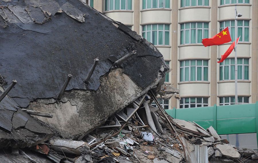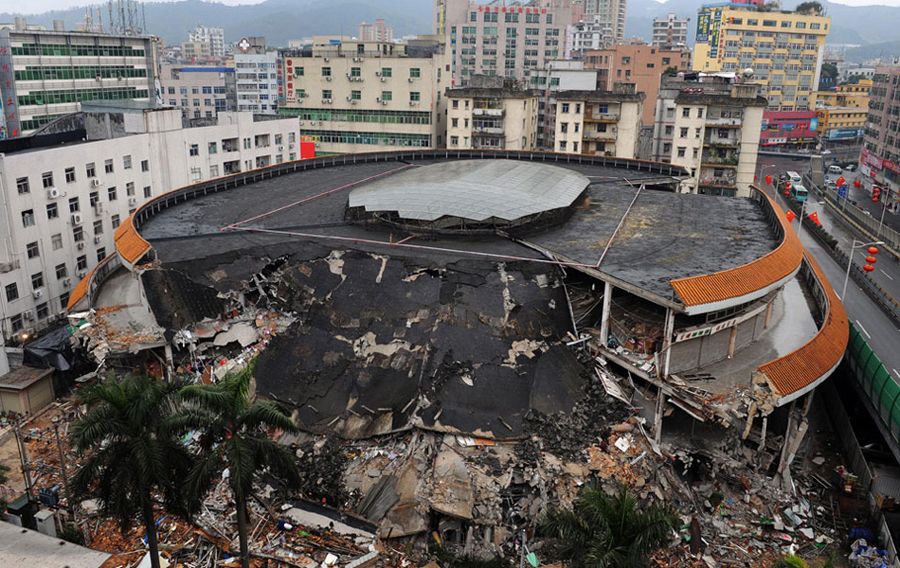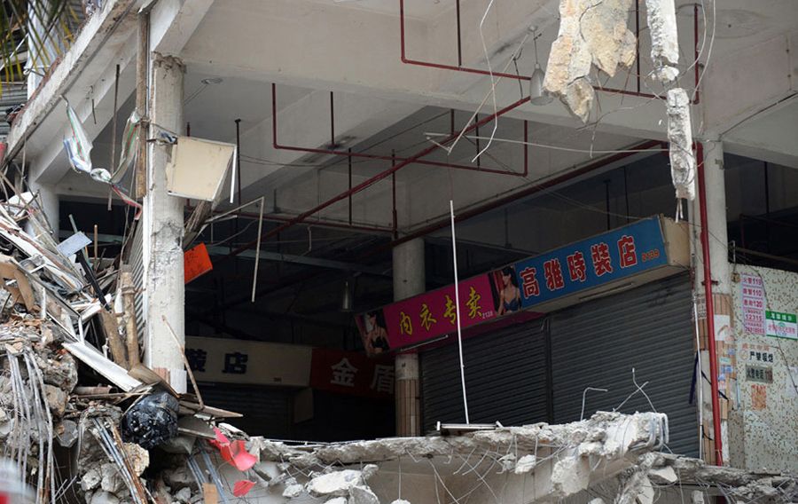 遭遇强拆的布吉综合市场墙体坍塌。