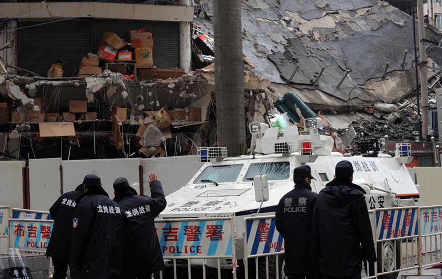 1月23日凌晨,除夕夜刚过,深圳龙岗布吉街道新乐路的布吉综合市场遭强拆,拆迁承包商雇用500余人围住市场,燃放爆竹掩盖强拆。布吉派出所出动百余警力阻止,被强拆人员包围,200余商户与强拆人员起冲突,警方出动防暴装甲车才将现场控制。