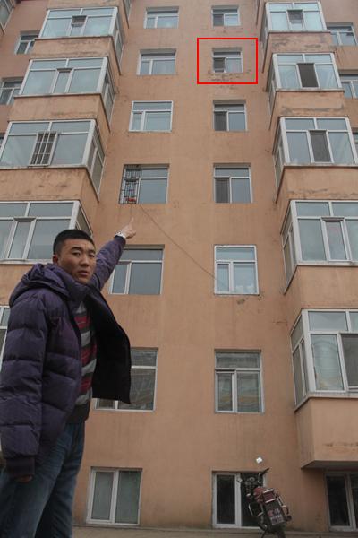 “我没想到他会在窗口放鞭炮。一看出事了,我马上跑到窗户那,两手拽住孩子的手腕,拼命喊救命。”宫玉娟说,“我一使劲,孩子也使劲,结果又往下滑了一点。我喊得都没人声了,这时看到B栋的谢尚威了。我求他接我孩子一下,他跑过来时,我也没劲了,孩子掉了下去