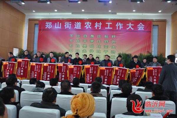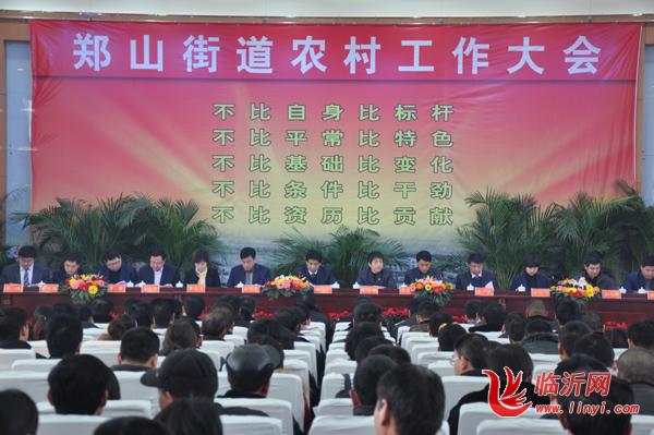 会议由郑山街道党工委副书记、办事处主任吴清军主持,街道人大主任李学林宣读了对2011年度先进单位和个人的表彰通报,领导们为获奖的先进村居、单位和工作区颁奖;党工委副书记李春秀宣读了关于部分村居和后进单位涉及社会治安、信访、计生工作的几个决定;郑山街道党工委副书记、办事处主任吴清军与两名村居负责人代表签订责任书;4位工作区书记分别作了表态发言。在郑山街道党工委书记于腾金科学回顾总结去年工作成绩经验,客观分析当前经济发展形势和制约发展的主要矛盾和问题,对2012年度的工作任务和目标进行安排部署的基础上,县领导杨会军充分肯定了郑山街道业已取得的成绩,并站在宏观的角度,高屋建瓴地指出了临沭与临沂的零距离、“街区合一”体制的部署要求及加快融入临沂市区一体化发展,打造“半小时生活圈”的战略方向。