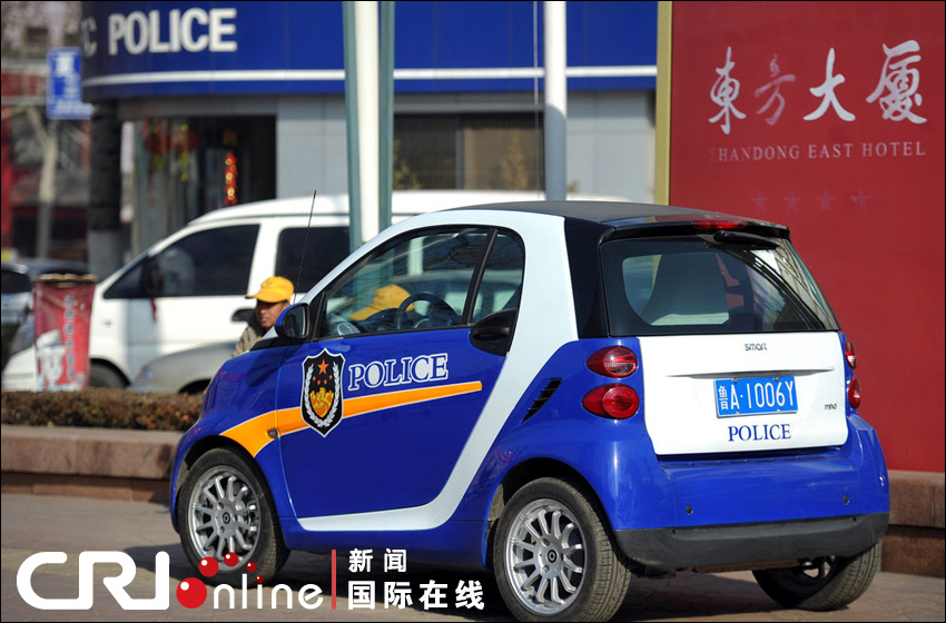 2月8日,济南市街头女交警驾驶Smart警车巡逻,车身颜色与通常警车的颜色不一致,悬挂的还是民用车牌。