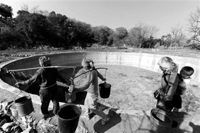 2月24日,连续干旱,云南省红河三家村村民吃水要到十公里外的水源点去买。新华社记者 秦晴 摄