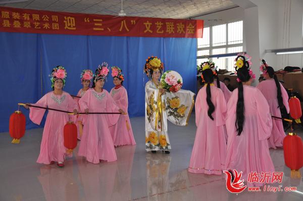 临沂网讯 3月7日下午,临沭县叠翠艺术团与临沭华裕服装有限公司举行迎“三八”文艺联欢会,叠翠艺术团团员与华裕公司职工同台演出,载歌载舞,共同庆祝这一全世界劳动妇女的节日。
