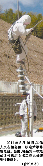 2011年3月24日 有报道称,东京电力合作企业的两名抢险工人遭遇强辐射,遭遇辐射量达到了全年承受量的24倍。