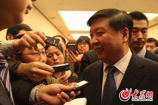 大众网北京3月7日讯(特派记者 李冉 尹玉涛)“‘蓝黄’两区建设的画卷已经展开,美好前景令人期待,热忱欢迎各类人才到‘两区’建功立业、大显身手!”“感谢这位网友对我省农业科技创新工作的关注。”“幼儿园是目前社会热切关注的问题,也是众多家长非常关心的问题。”今天下午,是十一届全国人大五次会议山东团开放日,山东省委副书记、省长姜大明细致生动地回答了来自大众网《请问省长》栏目的10个网友问题,这些问题涉及“蓝黄”区域经济、农村文化生活、政府自身建设、基本药物报销制度、入园难、房价、食品安全等10个方面。这是姜大明省长继2010年、2011年两年连续回答大众网友问题后(详见《大众网友十问省长、大明省长一一详答》、《大众网友再问省长、大明省长九页详答》),第三年回答来自大众网友的问题,在网络上引起强烈反响,截至记者发稿时,大众论坛《请问省长》的点击量已达375233次,回复312人。