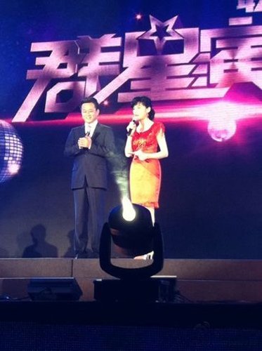 图为演唱会主持人朱军和周涛。(来源:微博)