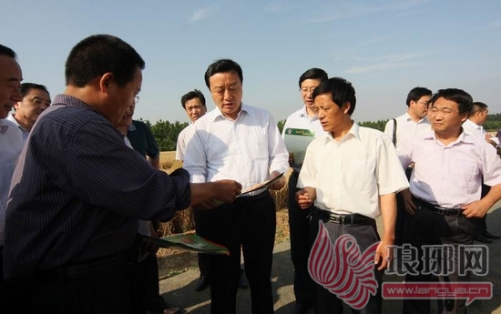 琅琊网6月10日讯 今天下午,市委副书记、市长张务锋在郯城县视察麦收工作时要求,各级各县区要抓住一切有利时机,抢收抢种,全面夺取“三夏”生产的胜利。副市长刘彦祥,市政府秘书长钱迎伟等陪同。