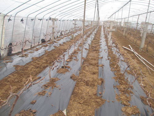 刚覆盖上地膜的葡萄地