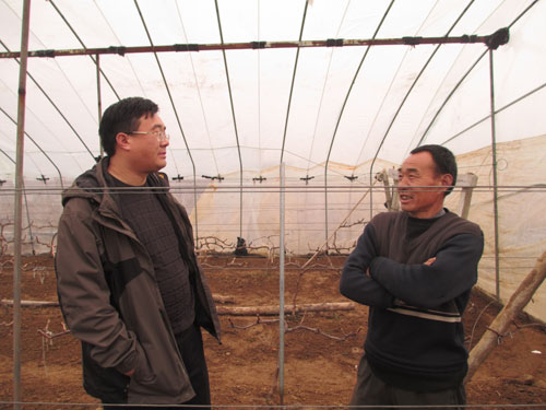 临沂网讯:2013年2月27日,临沭县玉山镇东朱仓村第一书记彭加华来到村民杨翠玉的葡萄大棚里,查看葡萄长势之后和老杨探讨起了东朱仓村葡萄生产的话题。彭加华说:“东朱仓村的葡萄种植对部分村民来说是新鲜事物,流转好的耕地既然放到了群众手里,群众就要大胆尝试、细心经营。全体村民要发挥规模优势,科学种植。要瞄准市场需求,在选对葡萄品种的前提下有针对性地进行生产。要虚心向葡萄种植先进农户学习和借鉴种植技术,在施用绿肥提高产量方面多做研究。”