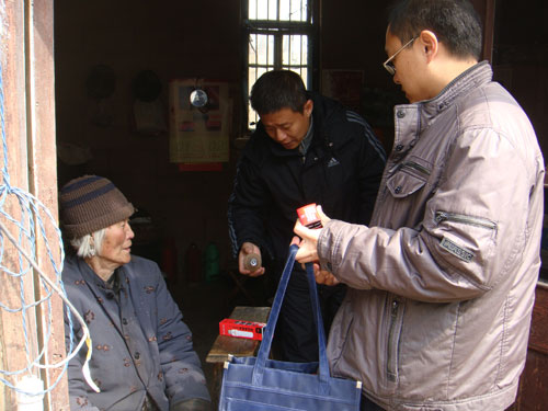 临沂网讯:4月8日上午,青岛大学选派驻临沭县玉山镇前穆疃村“第一书记”张辉(第一批)和陈健(第二批)来到伏祥友、伏开瑞、倪宝芝等老党员的家,走访慰问老党员,了解老党员的身体、生活情况。为老党员带去节能灯,向老党员介绍节能灯的好处,并亲自为行动不便的老党员安装节能灯。经过一上午的走访,两位“第一书记”为8户老党员送去“爱心节能灯”。