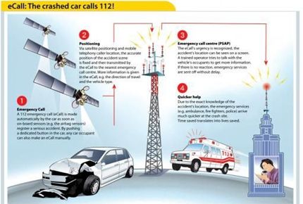 eCall紧急呼叫系统能够在发生撞车事故后自动拨叫欧洲统一的紧急救援电话112,并报告事故车辆所处的位置。