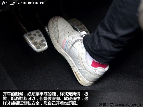 在总结各种鞋子的危险指数之后,提醒驾驶人员,开车时要选择舒适合脚的鞋子,鞋子要与脚贴合,这样在控制刹车和油门的时候都比较容易,平底鞋、帆布鞋、运动鞋就是比较好的选择,脚踩刹车没感觉的鞋不要穿。