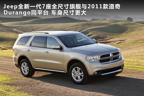 未来将要投产的这款Jeep全新旗舰将与同门兄弟道奇2011款道奇Durango同平台生产,在定位与车身尺寸上高于已经停产的Commander指挥官。在2010年以前销售的Jeep Commander(指挥官)是Jeep家族首款采用3排7座的座椅布局的豪华大型SUV,与偏重越野性能的大切诺基(车型 配置 图片 报价)Grand Cherokee相比,Commander(指挥官)更偏重日常的城市驾驶,突出大尺寸车身与空间而且配置也十分丰富。