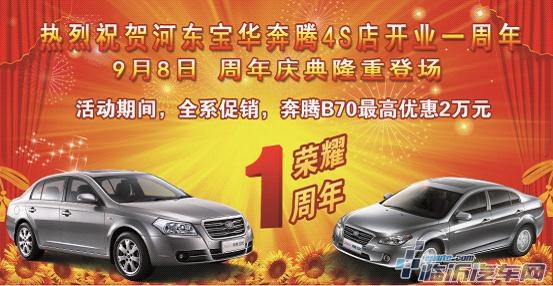 河东宝华奔腾4S店开业周年庆 优惠进行中