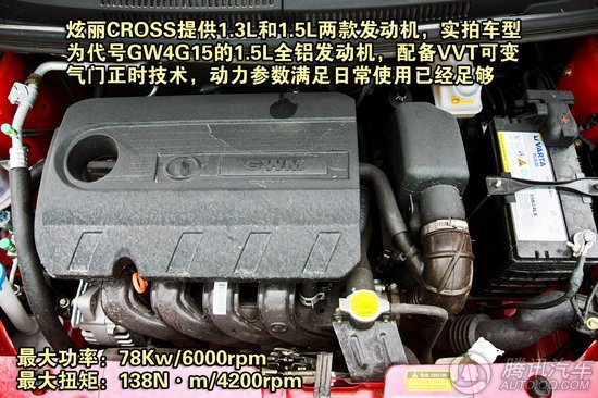 动力方面,早先上市的炫丽搭载与精灵相同的1.3L发动机GW413EF,采用博世公司先进的电控喷油系统。最大功率输出为65Kw/6000rpm,最大扭矩输出为115Nm/4000-5200rpm,并能达到欧Ⅳ排放标准,而后期上市的车型则采用了1.5L发动机。