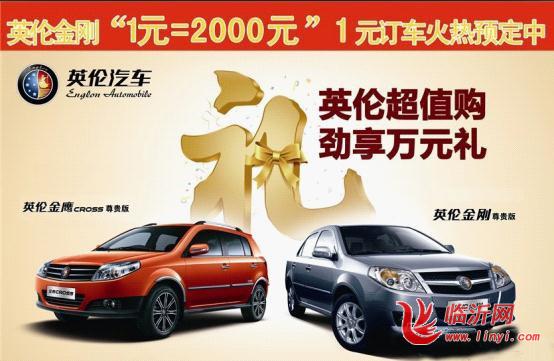 2011年11月8日,临沂市兴华英伦汽车4S店推出了“1元=2000元”1元订车活动,活动一推出立刻在社会上引起了极大的凡响。想一想现如今1元钱还能做什么?吃早餐都不够,居然还能够预定一台价值几万元的轿车。