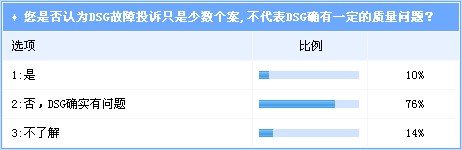 不过,也有参与者认为DSG故障属于个案,不具有代表性。但这类人士仅占投票比例的10%。另有10%的人面对这道是非题,给出了“不了解”的答案。