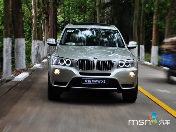 外观方面,新宝马X3前脸借鉴了同门师兄宝马X5 ,同时也有同门师弟宝马X1 的设计元素。仔细观察也能在2011款宝马X3上发现宝马X5宽大粗旷的姿态以及不少宝马X1的新样式。车身尺寸方面,新宝马X3比现款车型大出不少,其中,高度增加12mm、宽度加长28mm,离地间隙也提高了12mm。轴距自然也会加长,现在达到2810mm,增加了15mm。虽然尺寸增加,但由于结构中使用了铝材,车重却有所减小,新宝马X3要减轻了20kg左右。