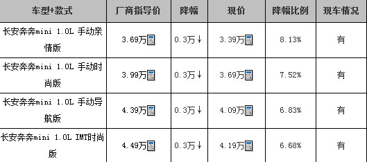 6月第一周降价TOP10——奔奔mini优惠3000元