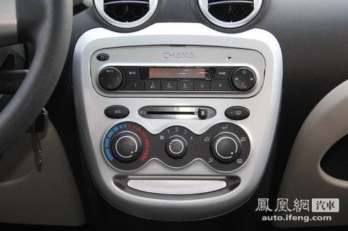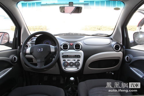 内饰方面与亮点颇多的外观相比,奔奔MINI的内饰可以说非常简单。中控台全部采用硬塑料材质,手感很一般。不过黑色与银色搭配的内饰,看上去倒是非常干净,是一款十足的家庭用车。整个内饰因受到价格约束,所以内饰材质上均为硬塑料。整个内饰最大的亮点无疑是仪表盘,使用行车电脑的仪表看上去非常漂亮。