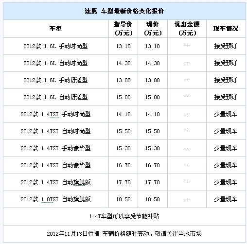 临沂网讯 近日,小编从一汽-大众临沂佳轮4S店获悉,店内速腾1.6L车型暂无现车,预订周期约为3个月,1.4T车型有部分车型在店,可享节能补贴,感兴趣的朋友可到店详细咨询。