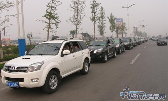 8点整,九州顺通长城4S店刘经理,932经济文艺广播主持人梁凯、文雯、阿森、吴涛,带领30辆私家车组成的车队浩浩荡荡准时出发。