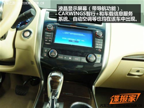 内饰方面,全新天籁与新一代Altima基本保持一致,国产车型有纯黑和浅色内饰供消费者选择。从图中看,此次拍到的车型配置并不低,多功能方向盘(带换挡拨片)、ESC车身稳定控制系统、液晶显示屏幕(带导航功能)、CARWINGS智行++和车载信息服务系统、自动空调等均在该车中出现。