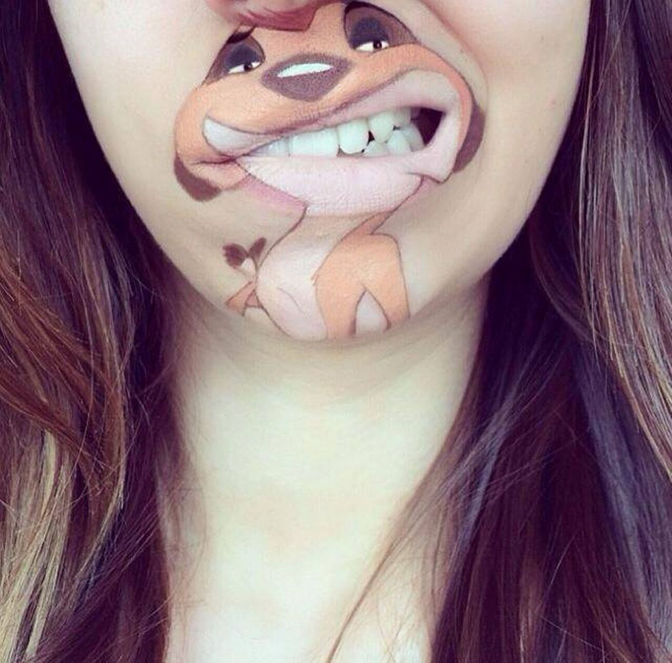 英化妆师在嘴唇上画生动卡通人物走红