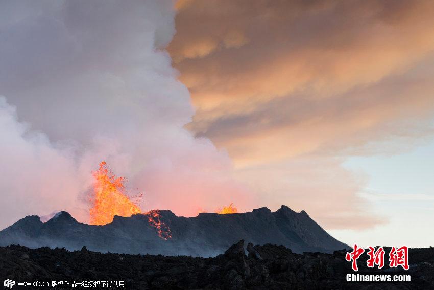 当地时间2014年9月26日,冰岛巴达本加(Bardarbunga)火山熔浆喷发。图片来源:CFP视觉中国