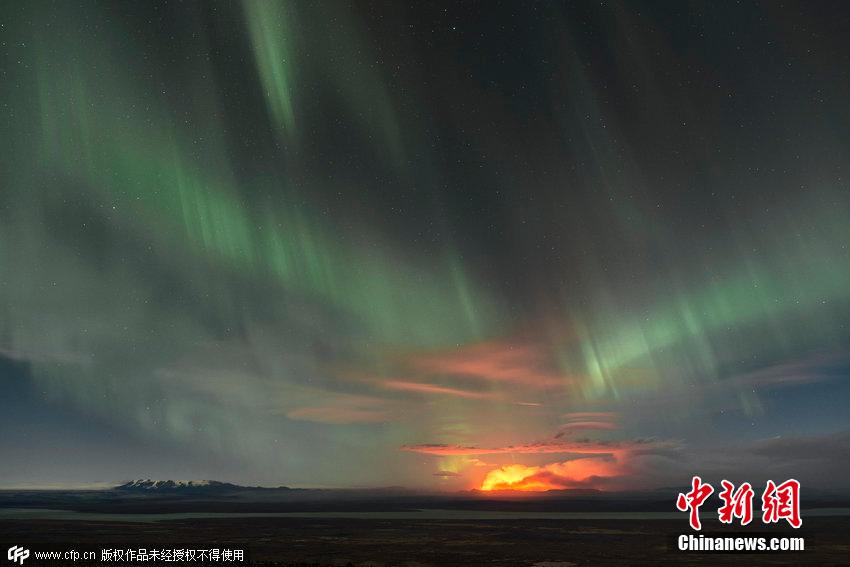 冰岛火山熔浆喷发 出现冰火相融景观