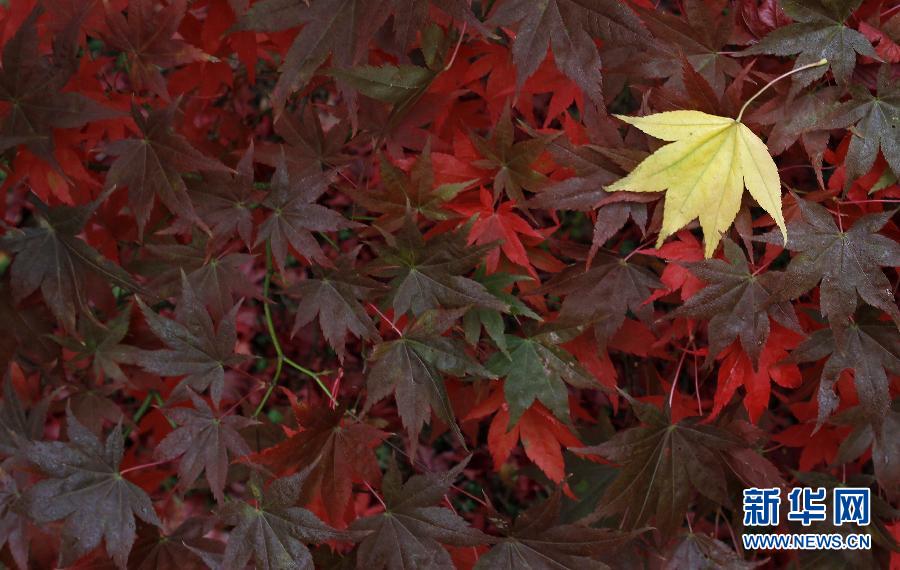 一叶落知天下秋。从枝头那一片落叶开始,秋天就这样走进了我们的视线。2010年10月22日,在英国西南部格洛斯特郡韦斯顿伯特的国家植物园,一片黄色的落叶躺在红叶间。 新华社/路透