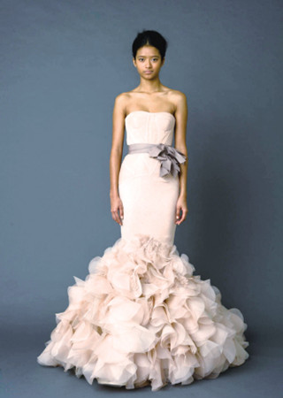 高腰设计的婚纱可是小个子新娘最爱的选择,高腰设计可是拉长腿部线条的奇妙法宝。如果你对自己的腿部比例不是很满意,那就选择高腰设计的婚纱吧!