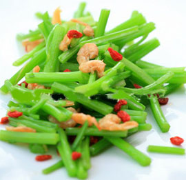 1、香芹择去叶子,洗净切小段,入沸水中汆烫一下装盘待用。